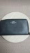 Sleek black Coach wristlet wallet. Features a convenient wrist strap.