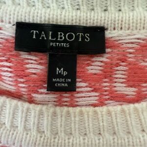 Talbots Fair Isle Sweater Women's medium petite Lambswool Blend Grey Pink Cream Ombre Nordic