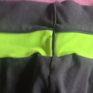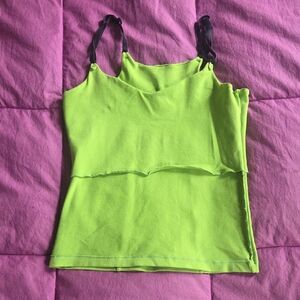 Vintage Brasil Sul activewear camisole and boot cut workout pants. Lime green ballet cut cami top has princess seams, adjustable black straps, and shelf lining. Black pants have studded lime green waistband, extra long inseamperfect for anyone tall with long legs. Size small / medium; Pant: 12.5" across waist, 7" rise fr, 8.5" rise bk, 33.5" inseam. Top: 14" pit-to-pit, 12" sideseam. Supportive Brazilian supplex holds its shape, color, and opacity; resists pilling. Flattering cut, works for casualwear, gym workouts, yoga, Pilates, barre class, a jog, and more. Gently worn, good condition.