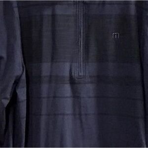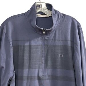 Keywords: Travis Matthews, men's pullover, XL sweater, blue sweater, quarter zip, casual wear, fall fashion, stretch material, long sleeve, machine washable.
