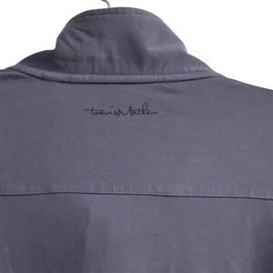 This Travis Matthews men's pullover sweater in size XL is designed for casual wear. It features a quarter zip and is made from a blend of cotton, polyester, and elastane, offering stretch and comfort. The sweater comes in blue and has a regular fit with long sleeves, suitable for fall. It is machine washable and manufactured in Thailand. The condition is pre-owned but excellent.