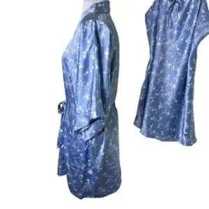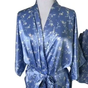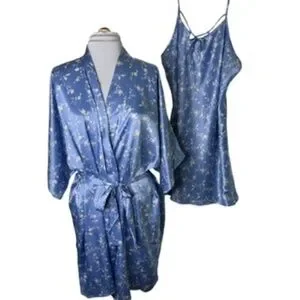 Morgan Taylor Intimates Light Blue/White Floral Robe and Short Gown Size L