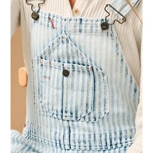 425. FAHERTY Denim Conductors Stripe Overalls $188 GUC XS