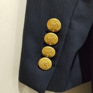 Notes: Classic navy wool blazer with signature crest buttons; compare to a similar blazer for best fit.