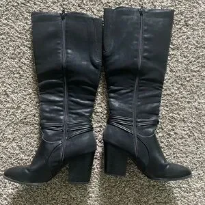 Tall Black Chunky Heel Women's Boots, size 9. Brand is Easy Street.