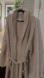 Luxuriously soft cream robe. Features a cozy collar and tie belt. Ideal for relaxation.