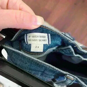 Raw hem and button closure front. My favorite pair of jeans they just don’t fit anymore!