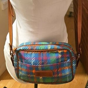 Dooney & Bourke Vintage Crossbody Plaid Handbag Zip Top Colorful Purse