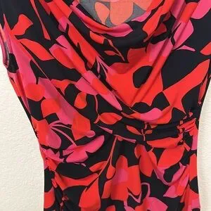 Cowl neck. Ruched waist longer figure flattering design sleeveless stretchy