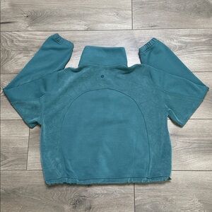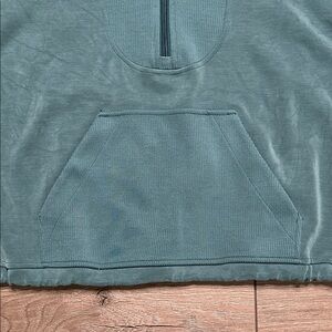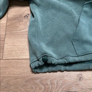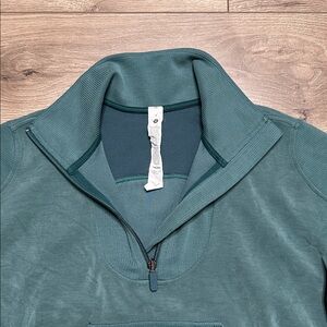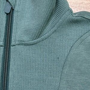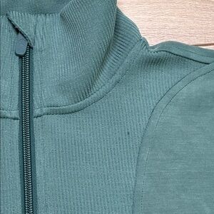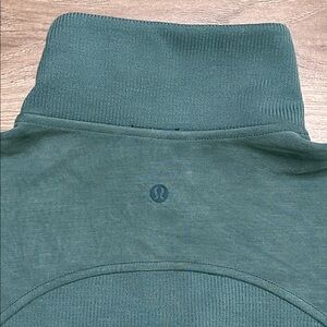 Lululemon Brushed Softstreme Ribbed Half Zip Pullover Green Jasper Size 4. There is one minor flaw. Small nick in fabric as shown in last two pictures.