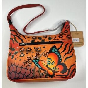 NWT Anuschka Painted Leather Shoulder Purse Wallet Set Women’s Orange