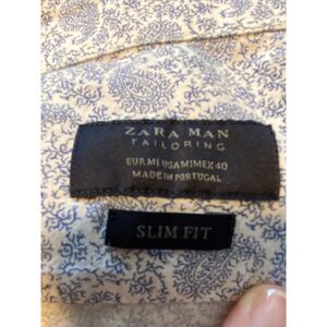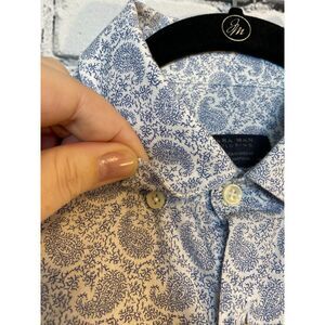 Zara Man Tailoring Slim Fit Long Sleeve Button Down Shirt Size M White Blue