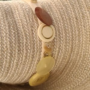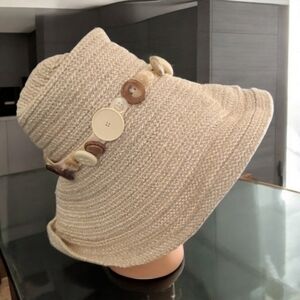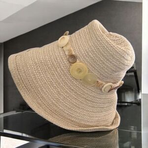 VINTAGE FRED BARE LONDON Straw Floppy Hat Wide Brim Craft Buttons Boho Hippie