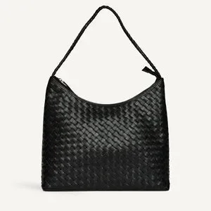 Elevate your style with this chic black woven shoulder bag. Its timeless design and versatile color make it a perfect accessory for any outfit.