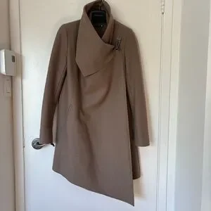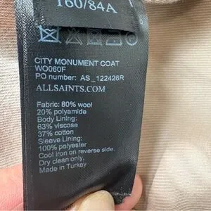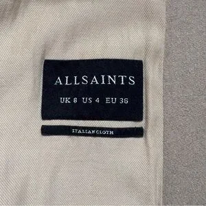Chic and stylish wool coat. Features AllSaints signature asymmetrical flowing design. Lined version. Wool blend. Perfect for layering. UK 8, US 4