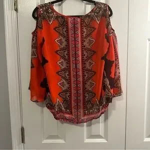 New York & Company Cold Shoulder 70’s Throwback Orange Top Bell Sleeves Womens S