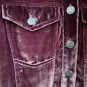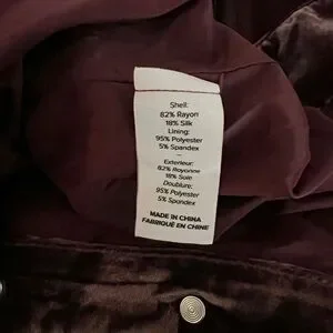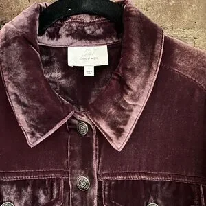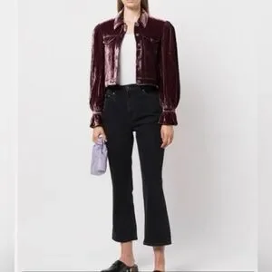 Beautiful burgundy silk-blend velvet jacket. Perfect for fall and the holiday season!