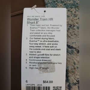 Lululemon sz 6 biker shorts. New with tags! These are tight and really hold you in nicely. Color is Java