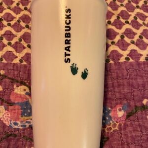 Starbucks rough finish finger painting boy coffee timber with white lid. New never used has original tag.