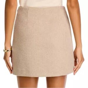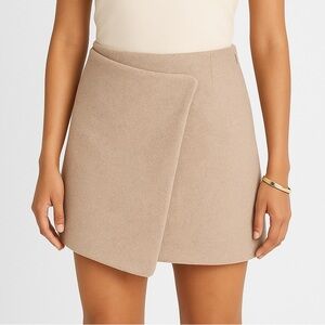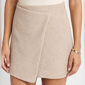 🆕 French Connection Beige Wrap Mini Skirt Asymmetrical Wool-Blend Size M (8)