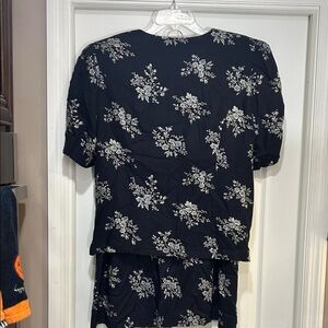 Beautiful two-piece vintage dress set with pretty flowers and beautiful old buttons and shoulder pads. Buttons are functioning buttons. Skirt is total elastic with no pockets.