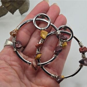 "5/$25" Silvertone Gemstone Nugget Large Circle Post Earrings