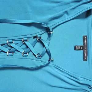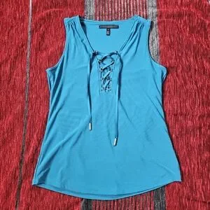 Vibrant Turquoise Teal tank with lace-up front. Sleeveless design.