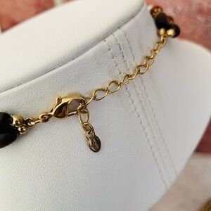 Chic necklace with gold and brown beads. Perfect for any outfit.