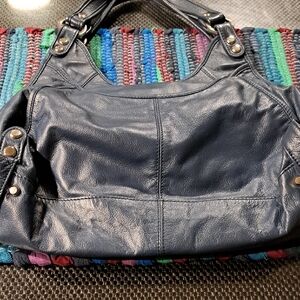 Elevate your look with this elegant denim blue leather shoulder bag. Its timeless design and quality craftsmanship make it a must-have accessory. Silver Hardware