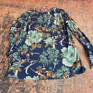 Johnny Was Janie Favorite Henley Peonee Blue Long Sleeve Floral Shirt Top