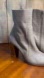 Chinese Laundry Women's Cool Kid grey leather bootie ankle boot inside zip sz 7.5 staked 4” heel gently used like new.