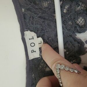 Womens POL boho flowy longsleeve blouse top size large. V-Neck. Lace and mesh details throughout. Good pre-owned condition. Approximate measurements provided. Boho. Beachy. Feminine. Preppy. Business Casual. Fairy. Whimsical. Resortwear. Western. Equestrian. Anthropologie. Free People.