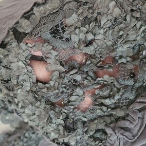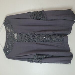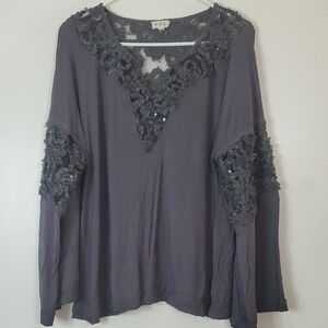 POL Grey BoHo Lace Bellsleeve Top Size Large Soft Stretchy V-Neck Whimsigoth