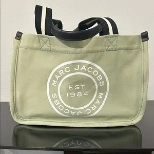 Sleek Marc Jacobs messenger bag in sage green. Features bold logo design. Ideal for daily use.