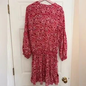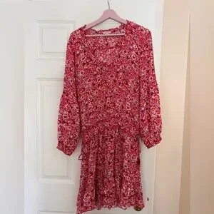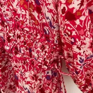 Elastic drop waist with tie detail, elastic cuffed sleeves paired with a bright, floral print-the best of both worlds-comfort and style!