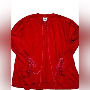 Pirate or renaissance-style shirt red long-sleeved w/ a lace-up front & sleeves