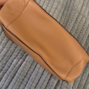 Kate Spade pebbled leather medium size bag in a light fawn color with gold hardware. Comes with a long strap that is adjustable and the short strap as shown. Lined in striped fabric with one zip pocket and a slip pocket inside. Bag is approximately 8” x 11” only used once, in excellent condition, looks new! No spots or scuffs. Non smoking home.