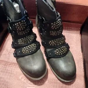 Step out in style with these studded leather ankle boots. Perfect for adding an edgy touch to any outfit.