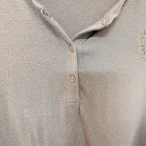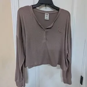 Long sleeve cropped sleep shirt with button detail. Embroidered logo on chest. Perfect for sleep and lounging.