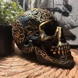 Decorative Black and Gold Skull Accent