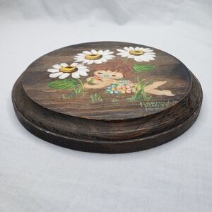 Vintage Wood Floral Girl Wall Art Daisies Handpainted 1975 6.5 Inches