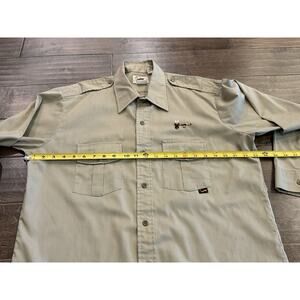 Vintage Duxbak Mens Tan Long Sleeve Fishing Embroidered Fly Fishing Shirt Size L