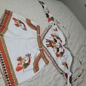 Vibrant women's top and shorts featuring a colorful parrot print. Perfect for adding a splash of color to your wardrobe.