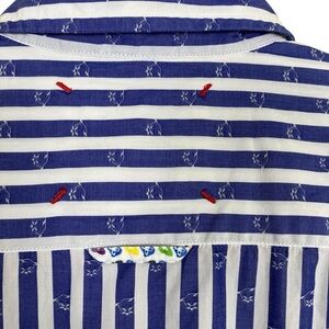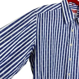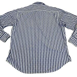 Robert Graham Men's Freshly Laundered Shirt Blue & White Striped Patchwork Sz L