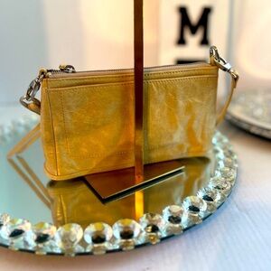 Chic gold crossbody bag by HOBO. Sleek and versatile design. Perfect for any outfit.