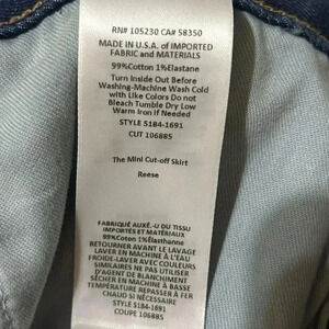 EUC Current Elliot size 29 Reese cut off denim mini skirt with button fly. 15 inches long. Truly a closet must have year round. So great in the winter with tights and boots! Wear with any shoe! Classic.