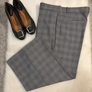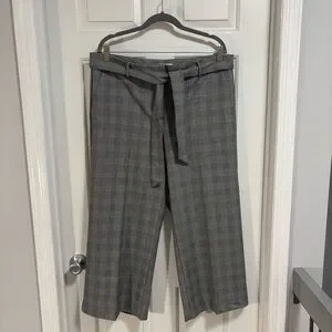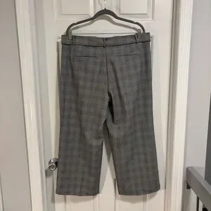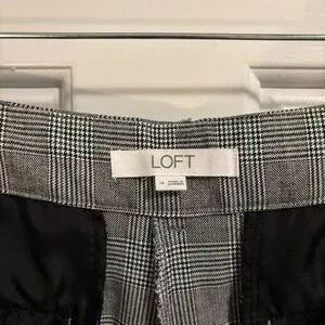 Loft’s wide leg crop pants are a traditional black and white houndstooth pattern with a touch of green. Approximate measurements lying flat; waist 19”, rise 11.5”, hip 22”, inseam 25”. In excellent condition with no visible wear or damage. Worn once or twice. Please ask questions before purchase as all sales are final.