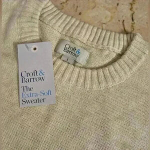 Croft & Barrow Mens Extra Soft Cream Crew Neck Sweater Size Large NWT