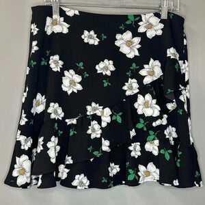 Bar III Skirt Women's Ruffled Floral Print Mini Skirt Black Size 8