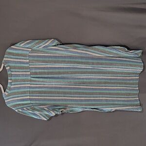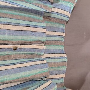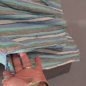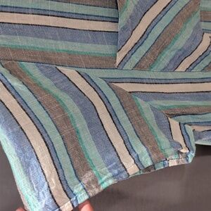 BLUES, WHITE AND TAUPE VERTICAL STRIPE